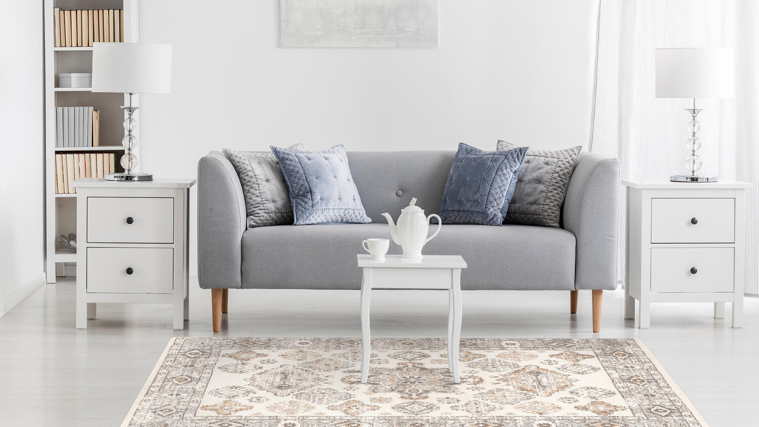 Posebna novina u tepisima sa 3D efektom. Paleta koja odiše originalnosti i modernom stilu sa akcento plavom i sivom bojom.
